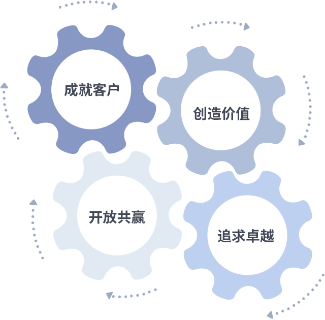 成就客户是一切决策的出发点,创造价值是衡量所有工作的标准,追求卓越是SG亚洲胜游做事做人的态度,开放共赢是SG亚洲胜游的格局也是最终的结果。价值观的齿轮环环相扣,推动着组织里的每个人不断向前。